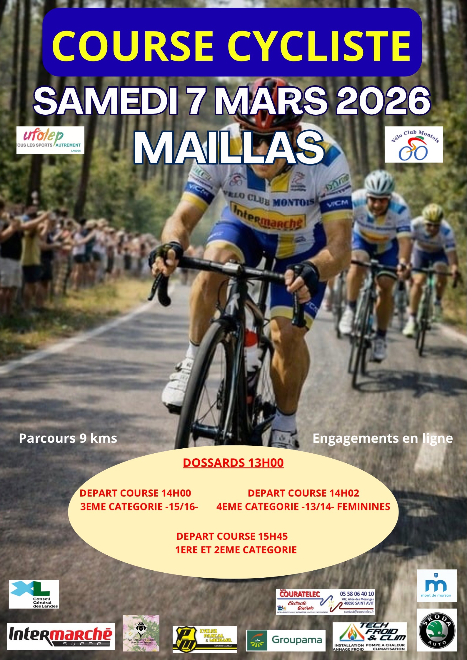 Le Vélo Club Montois organise chaque année la course « La Ronde des Pins », bien connue de tous les coureurs landais et aquitains. C’est une épreuve en ligne de 115km à travers la Chalosse sous l’égide de la FFC. Décrire objectis, difficultés…